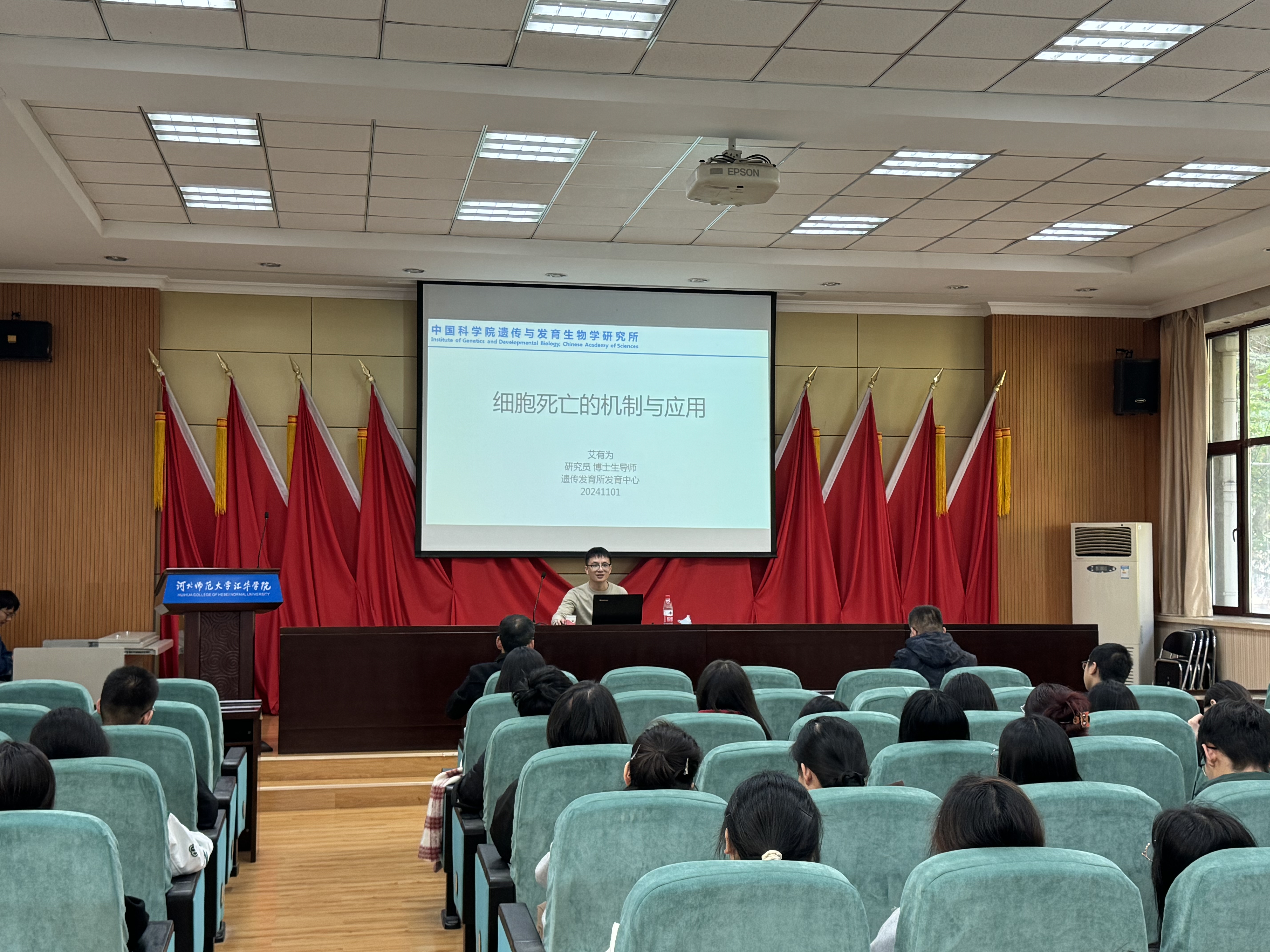 11月2日,中国科学院遗传与发育生物学研究所研究员、博士生导师艾有为,应邀做客Beat365“汇华名家讲堂”,在图书馆一楼报告厅作题为“细胞死亡的机制与应用”的学术报告。理学部部长张增水主持讲座,理学部教学工作副部长、辅导员以及生物科学专业学生到场聆听。