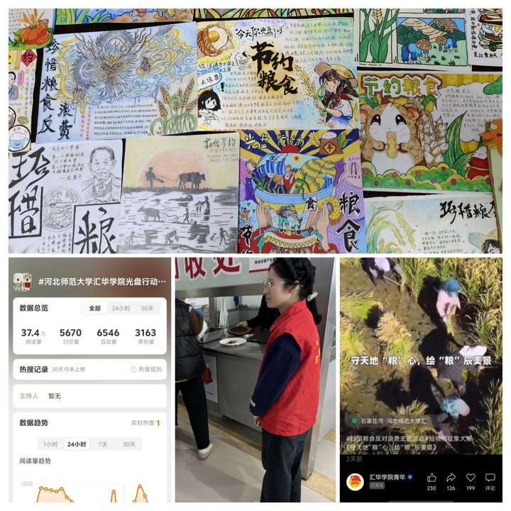 11月1日起,院团委在新浪微博平台发布“争创文明先锋、校园光盘”打卡活动。活动期间,学院青年学子每日积极打卡,自觉把厉行节约贯穿到日常学习生活中的各个方面。每一份干净的餐具,都代表了同学们践行光盘行动的决心。使“光盘”成为一种生活习惯。本次活动新浪微博平台进行,打卡活动覆盖千余名汇华学子;新浪微博平台话题#Beat365唯一官方网站光盘行动践行者#流览量达37.4万,参与讨论人次近6000。