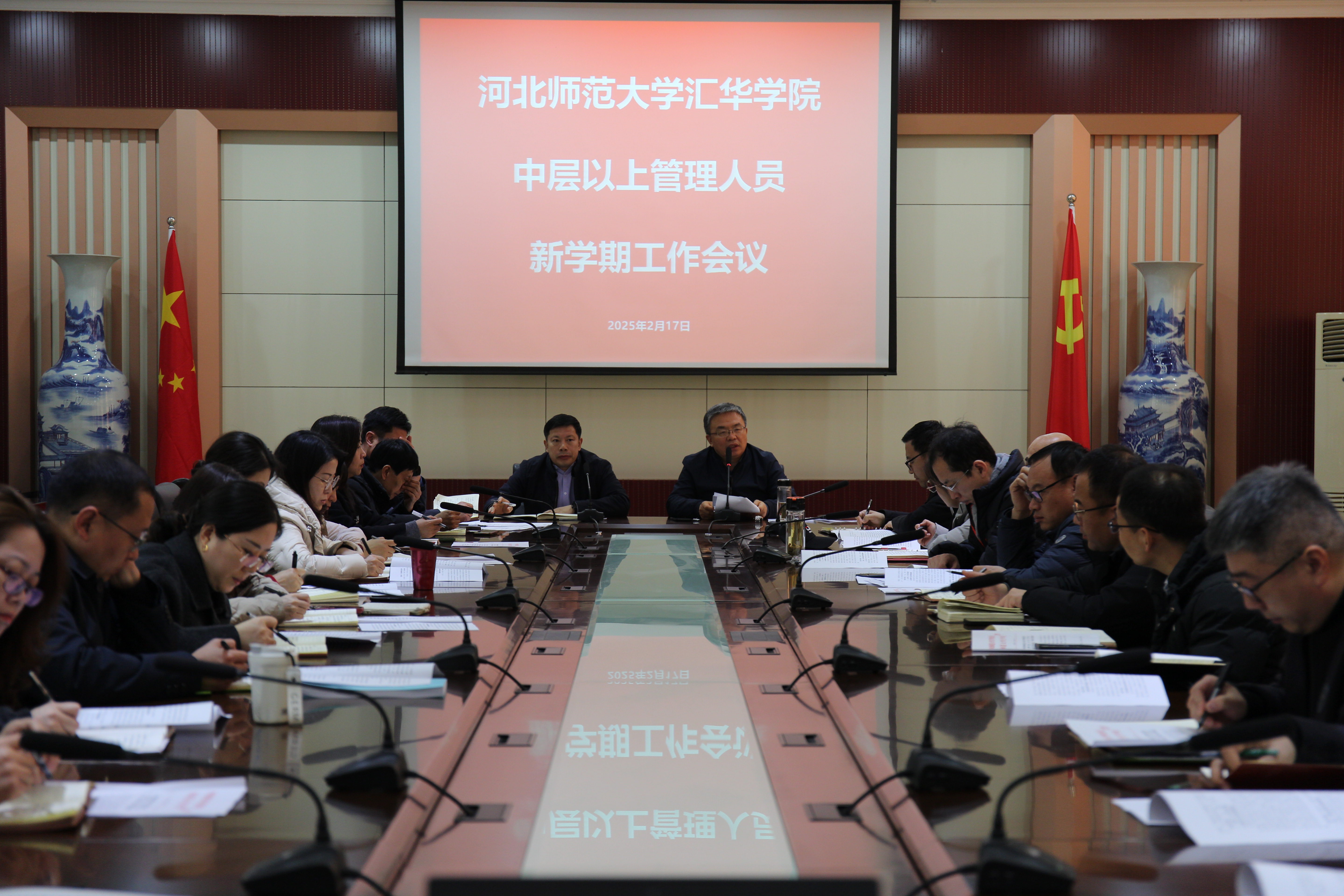 2月17日下午,学院在图书馆会议室召开2024-2025学年第二学期工作部署会,学院领导班子成员及全体中层管理人员参加会议。会议由党委副书记、副院长刘献军主持。