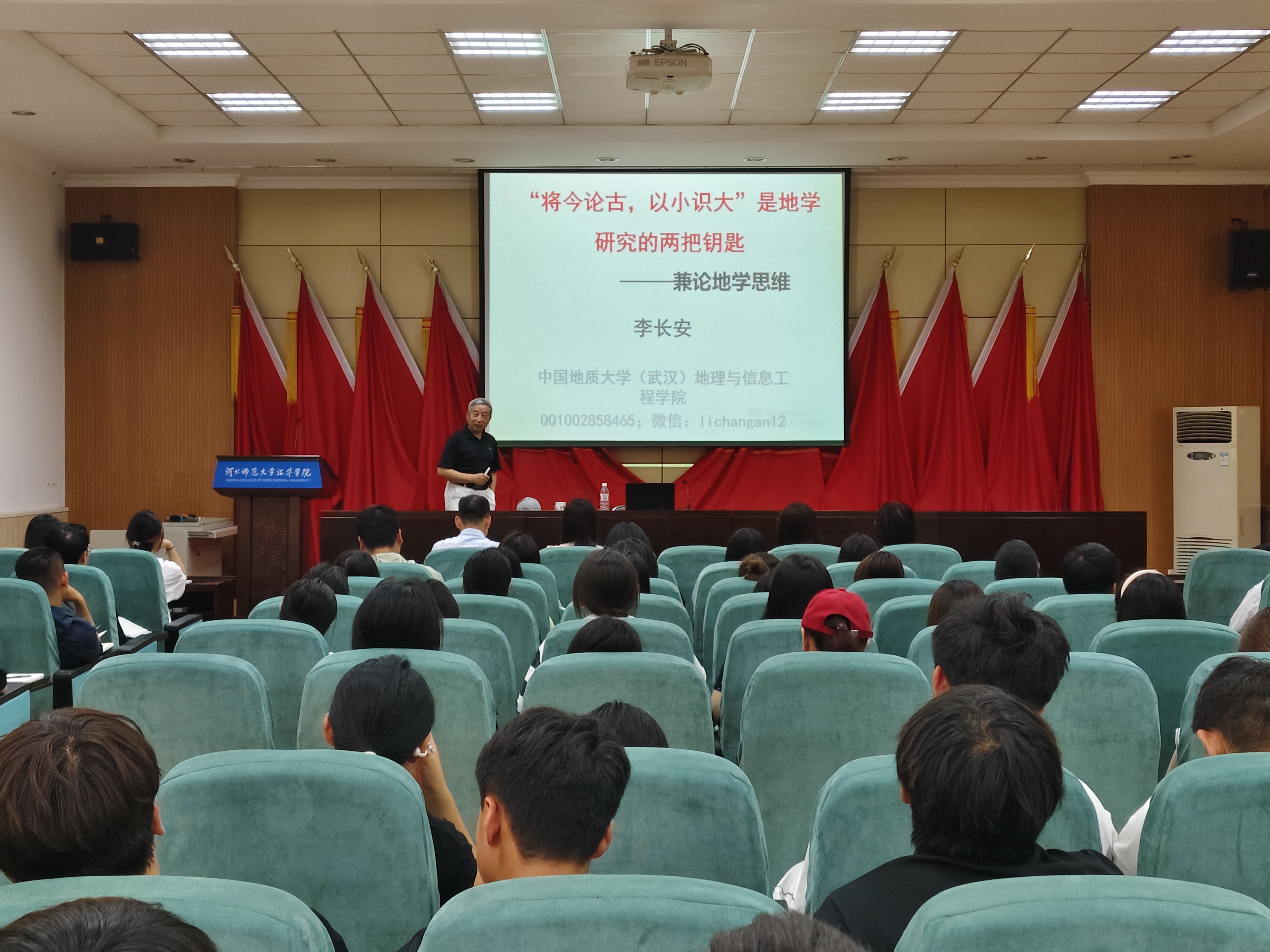 李长安教授从教育的本质出发,围绕地貌专业知识,从科学的观察、科学的思维、科学的分析、小现象大道理四个方面,就如何发现问题、提出问题、解决问题,以达到提升能力、服务社会的目的。李教授的报告高屋建瓴,振聋发聩,引人深省,他的讲解深入浅出,乡音亲切,令学生们如沐春风。李教授还与在场的学生进行了热烈的互动,耐心解答了同学们提出的问题,进一步激发了学生们的学习热情,也增强了他们对地理科学的兴趣。