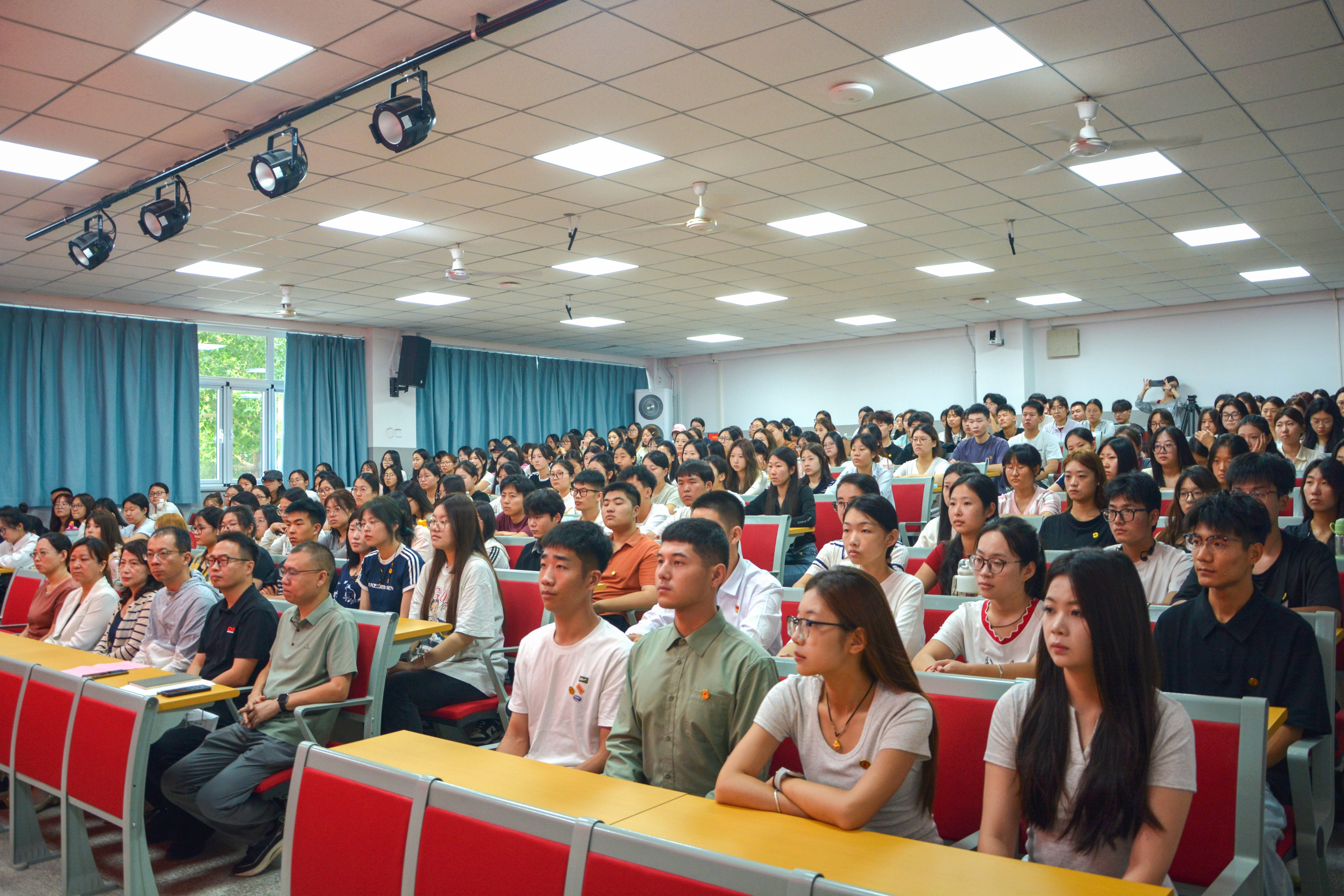 教师代表刘斌发言,他鼓励同学们带着初心出发,一起踏上新的征程,迎接新的挑战,用勤奋和汗水,用智慧与热情,在大学时光中描绘最精彩的画卷。经济管理学部旅游管理专业2024级专升本班王子安作为在校生代表发言,鼓励新生汲取校训所蕴含的汇华精神、汇华愿景、汇华力量,充实地度过大学时光。新生代表教育学部学前教育专业张明钰在发言中倡议全体新生树立远大理想,陶冶高尚情操,以优异的成绩回报学校、回报社会,共同谱写人生的华章。