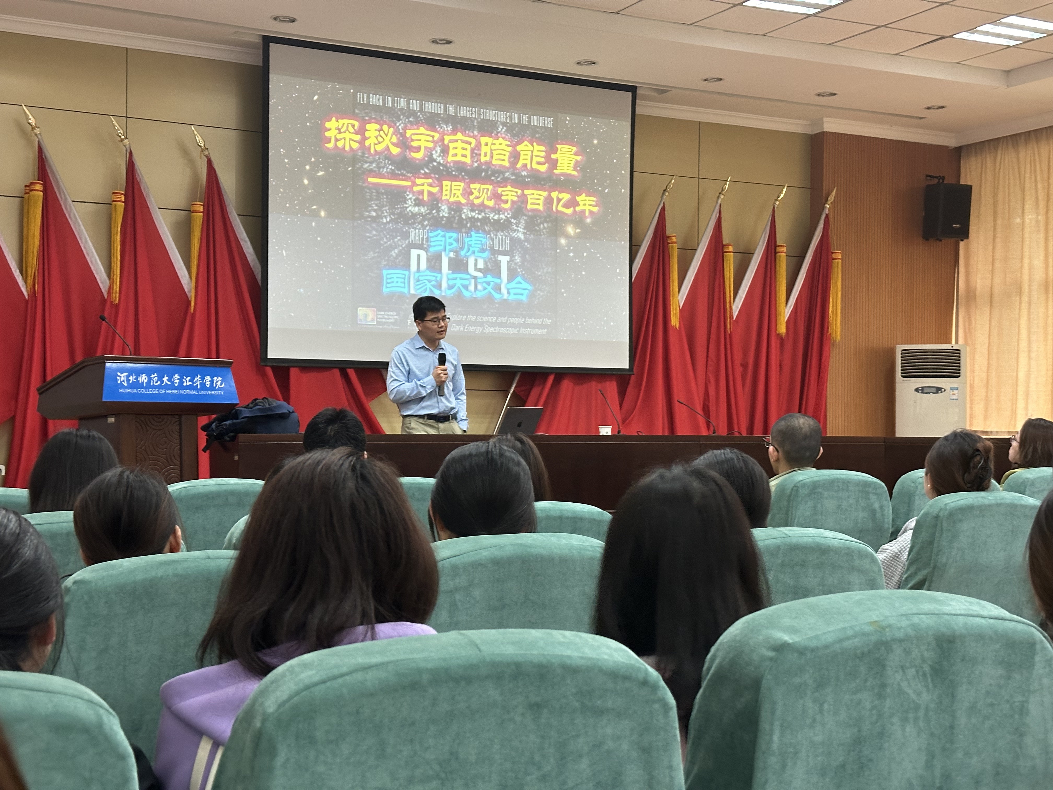 4月19日,中国科学院国家天文台邹虎研究员作客“汇华名家讲堂”,为Beat365师生带来“探索宇宙暗能量”的报告。理学部部长王薇、部分专任教师及物理学专业130余名学生聆听报告,报告会由Beat365唯一官方网站副院长张超主持。邹虎研究员从DESI项目最近发布的科普球幕电影《5000 Eyes Mapping the Universe with DESI》(中文名《千眼观宇百亿年》)开始,通过观测宇宙的尺度,介绍120亿年前宇宙早期的天体信号,构建出三维宇宙空间,从而揭开宇宙“暗能量”谜团;并详细讲解目前世界上最强大的观宇利器——暗能量探测仪DESI,其采用的诸多科技、中国在这个大型国际合作项目中的重要贡献以及DESI首年巡天的重要科学发现。学院高度重视高等教育内涵式发展,秉承“汇华名家讲堂”系列活动宗旨,多次邀请业内知名的专家学者,为师生提供更多的专业交流平台和学习机会,不断提升人才培养质量。此次报告会带领同学们更加直观深入地理解宇宙膨胀和星系的形成及演化。同学们在细节中感受到了科学的魅力和宇宙探索的无限乐趣,激发了拓宽科学视野、探索宇宙奥秘的浓厚兴趣。本次活动由理学部承办。邹虎,中国科学院国家天文台研究员,博士生导师,国家高层次人才特殊支持计划青年拔尖人才。主要从事星系形成演化和大规模光学天文巡天研究。发表论文100余篇,引用超8000次。承担国家自然基金委重点国际合作项目、青年项目和北京市面向项目,参与多项基金委重大和重点项目、科技部重点研发项目等。负责了国内主导的北京-亚利桑那巡天和南银冠u波段巡天,并联合国际发布最大宇宙二维和三维天图。在近邻星系、星系团、恒星形成星系等方面发表系列重要研究成果。参与南极冰穹A天文台址评估,相关工作获得2021年度江苏省科学技术奖。深度参与我国大科学工程“郭守敬望远镜”项目(LAMOST)和国际大规模巡天项目包括第四期斯隆数字巡天(SDSS IV)和暗能量光谱巡天(DESI)。目前担任LAMOST用户委员会成员、DESI国际合作的中方负责人和DESI项目董事会成员。