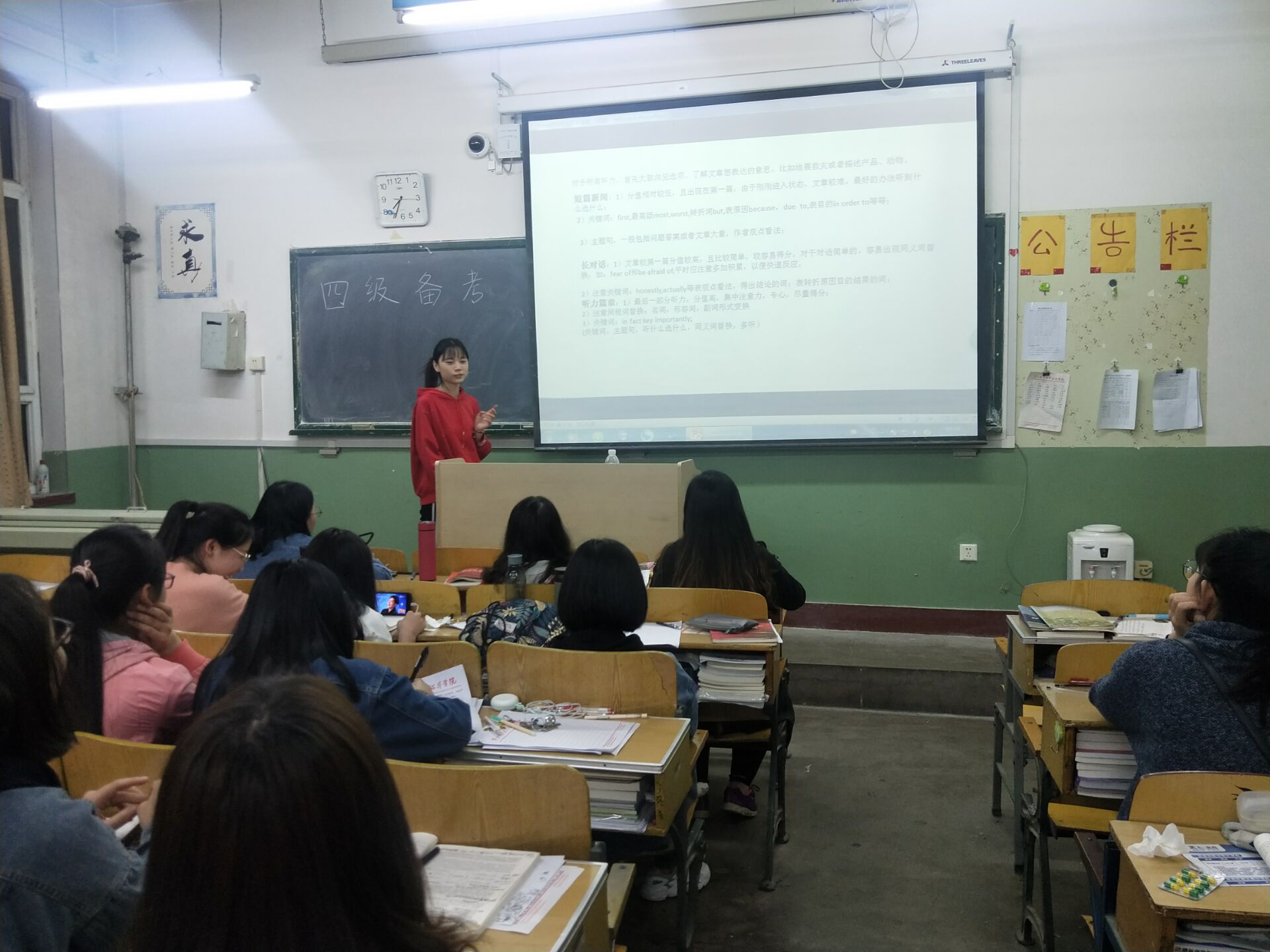 3月27日,2017级通信工程1班在第一教学楼501教室召开了“信心备考,一锤定音”英语四级学习交流会。