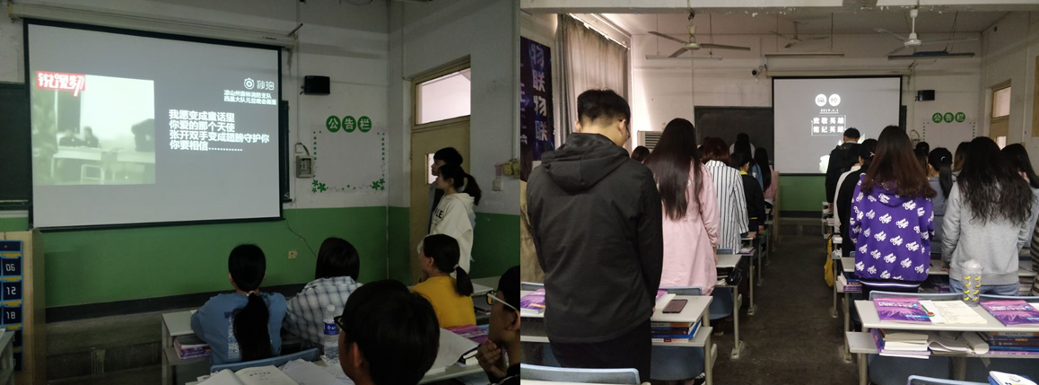 3月30日四川省凉山州木里县境内发生森林火灾,救火行动中,突发林火爆燃,30名救火人员牺牲。为了让同学们缅怀救火英雄,感受英雄不怕牺牲、热爱祖国的精神,4月4日在第一教学楼415教室,2017级物联网工程1班全体同学自发开展“向英雄致敬”主题班会活动。