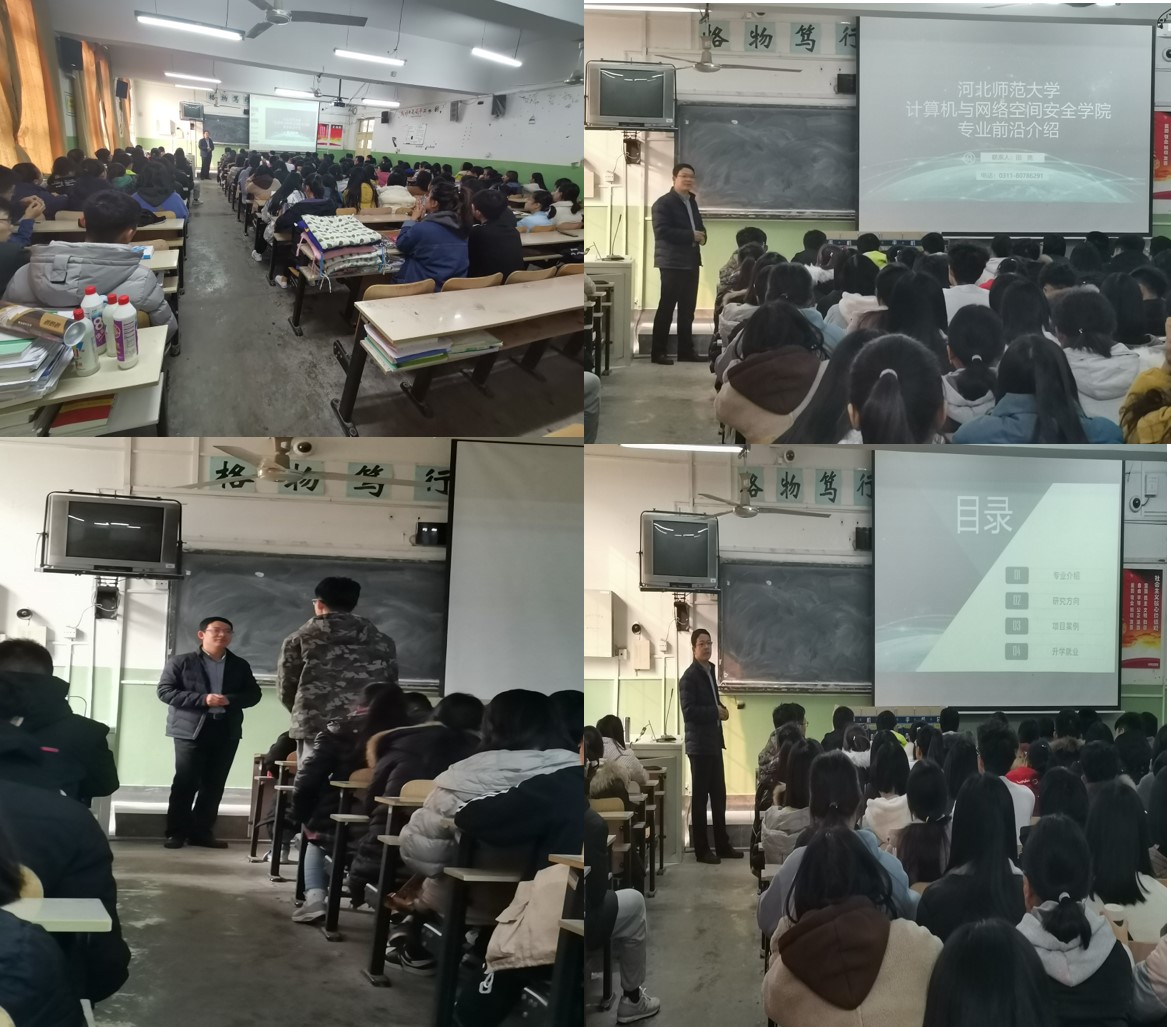 田亮从专业领域、研究方向、项目案例、升学就业四个方面进行分析和讲解。他详细介绍了网络空间安全、大数据、人工智能三个研究方向,重点介绍了AR实验室与区块链两个要重点研究的领域,通过诸多项目案例,比如:河北省计划生育药局管理服务平台、人脸识别与检测系统开发、河北省高中综合素质评价系统等,介绍了计算机在其它行业的应用。他结合自己所带毕业生的就业实例,分别从从业特点、人才需求现状、薪资待遇、发展方向等方面对计算机专业的就业进行了深入分析,使学生们对计算机专业所能从事的工作有了较清晰的认知。最后田老师对同学们提出的问题一一进行解答,田老师特别指出,大学生要学会学习、学会利用网络扩充自身知识,提高自己的综合素质和竞争力。