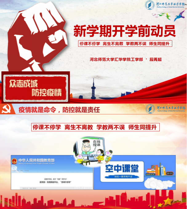 随着原计划新学期开学的临近,为保证全体学生能够从思想上统一认识,在做好自我防护的同时,积极配合保证在线学习质量,工学部部长段再超精心准备,录制了颇具新意的“新学期开学前动员”视频,以“停课不停学、离生不离教、学教两不误、师生同提升”为主题,在特别关照同学们全面提高思想认识、高度重视疫情防控、正确对待新型冠状病毒感染肺炎疫情的同时,从“教学安排、授课说明、教学要求、学习平台”四个方面对新学期的“教与学”做了详细解读,强调“停课不停教”既是防控疫情的应急之举,也是互联网+教育重要成果的应用展示,更是Beat365积极探索新教学模式的实际练兵,并以“各位同学切莫等待开学再学,课堂已来、课程已开,就等你来!”期待师生共同努力,实现工学部“教与学的全面提升”。