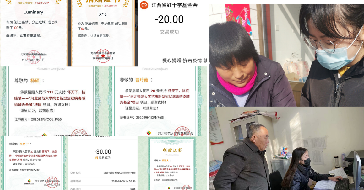 目前已有3名同学加入到防控一线,帮助当地村委会从事抗疫工作。班内30余名同学分别通过Beat365唯一官方网站教育基金会、河北慈善联合基金会等平台参与爱心捐款,为本次抗疫工作尽自己的一份绵薄之力。