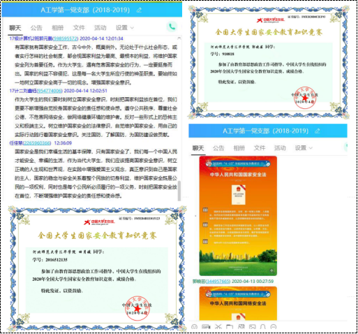为让党员们更准确的把握国家安全形势,牢固树立和认真贯彻总体国家安全观,组织全体党员观看了由教育部思想政治工作司指导、中国大学生在线承办的“千万学生同上一堂国家安全教育课”,课后党员通过线上讨论的形式进行了交流学习。