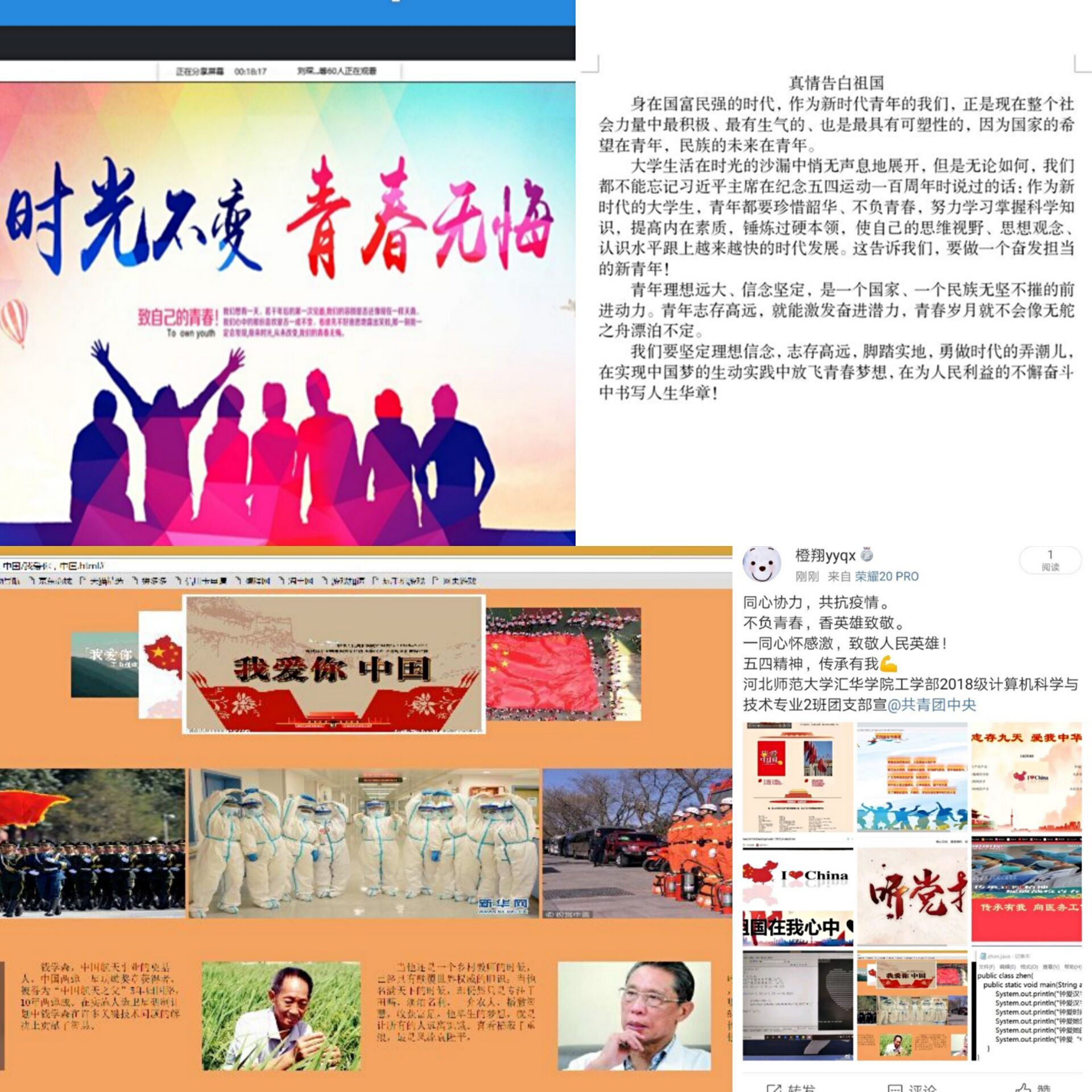 为引导团员青年深入学习我国国家治理体系与治理能力的优势及在抗击新冠肺炎疫情中的重要作用,激励、引领团员青年在党和人民最需要的地方贡献青春力量,4月28日至5月10日,2018级计算机科学与技术2班开展了以“真情告白祖国”为主题的系列团日活动。