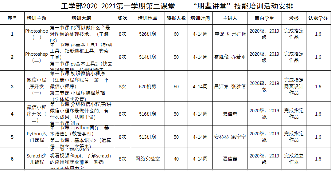 2020-2021-1学期“朋辈讲堂”活动安排表