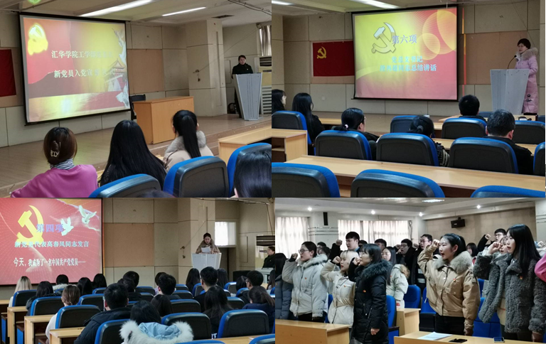 12月10日下午在第一教学楼412报告厅,工学部党总支举办了新党员入党宣誓活动。宣誓由党总支宣传委员魏娜娣主持,工学部77名师生党员参加了宣誓仪式,并聆听了党总支书记段再超的党课。