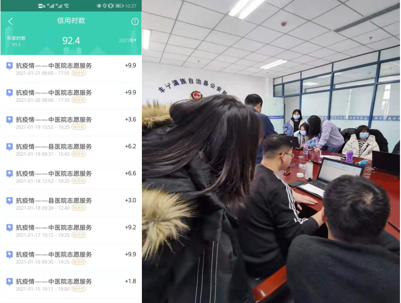 在县中医院志愿服务时,于跃同学主动向会长请求到核酸检测广场负责维持核酸检测秩序,在丰宁零下二十多度的天气里,她和她的同组人员站在寒风中将县中医院核酸检测队伍维持的有条不紊。县中医院持续一周的工作她从未缺席。“请大家排好队,请保持一米安全距离”、“您好!交费请到这里排队,这边人少”、“您好!请您配戴好口罩,这边测量体温后进入门诊”、“您好!不要着急,我来帮您扫描健康码和行程码”、“您好,做核酸检测请往这边走”、“没有身份证的请到登记处填表”、“请您扫码凭行程卡进入!”、“请在这里扫码打印报告,我来帮您!”......这些话她已经熟记于心。当协会接到县医院的求助时,才完成县中医院工作的于跃又再次报名了县医院的志愿服务。县医院人流密集,院内结构复杂,于跃同学在到岗的第一上午就熟悉了院内就诊流程,在第一天下午投入到放射科的志愿服务工作中。在放射科需要疏散人群,维持就诊秩序,并且对每一个进入科室的人员查验行程码,测量体温。遇到不会用智能手机或者没有智能手机的老年人,她会耐心的按照所提供的证件进行登记报备,遇到不知道如何就诊取结果的患者,她会仔细查看就诊信息引导或带领患者到相应的位置。当有患者因为没有佩戴口罩可能会耽误就诊时间时,她毫不犹豫地将自己随身携带的口罩递给需要的人。认真对待志愿服务不求回报,在县医院放射科工作的这几天见到各种各样的病人,但她最希望看见的是空无一人的走廊,每当看到这样的场景,她坚信没有一个冬天不会逾越,在全社会的共同努力下,必将打赢这场防疫阻击战。在县医院志愿服务的休息日,她又投入到县公安局的大数据排查工作中,公安局的工作强度大,看电脑看的眼睛累了、困了,她就去卫生间用凉水洗脸后继续投入到工作中。