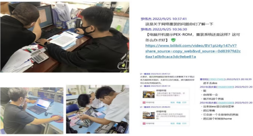为了更便利的为师生提供服务,小分队的成员在收到老师或者同学的电脑维修求助信息后,立即发布到QQ群中,队员们看到消息,第一时间前往现场进行义务维修。为保障学院教学活动的正常进行,小分队的成员多次帮助各学部修整多媒体,获得了同学和老师们的一致好评。特殊时期,如果不能进行线下维修,队员们也会积极的在线上进行相关指导,采用远程操控等方式,来切实解决师生们遇到的问题。同时,电脑小分队也很注重成员的素质提升,时常普及电脑及电脑维修等方面的知识,逐步完善对相关技能的掌握程度,不断提高电脑小分队的服务能力。