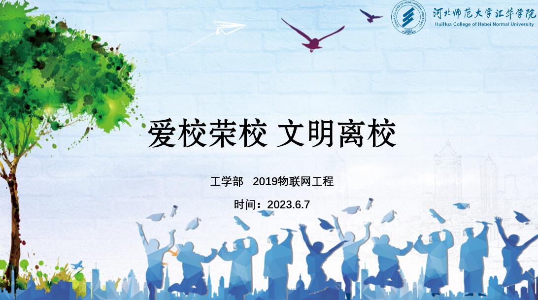 为做好2023届毕业生教育、管理和服务工作,确保毕业生离校前工作的顺利开展,倡导毕业生文明有序离校,2019级物联网工程1班于6月7日组织召开了“爱校荣校、文明离校”主题班会。主题班会由辅导员主持召开,线上线下同步开展。