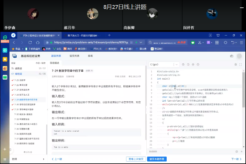 为进一步提高学生程序设计水平,培养学生对数据结构、算法分析与设计的学习兴趣,提升计算机应用和实践能力,同时为国家级、省厅级程序设计大赛培养中坚力量,工学部暑期开展了2023年“暑期程序设计能力提升训练营”。训练营于8月27日下午3点举办了“助力编程启航”C语言暑期研学线上交流活动,活动以钉钉视频会议的形式开展。