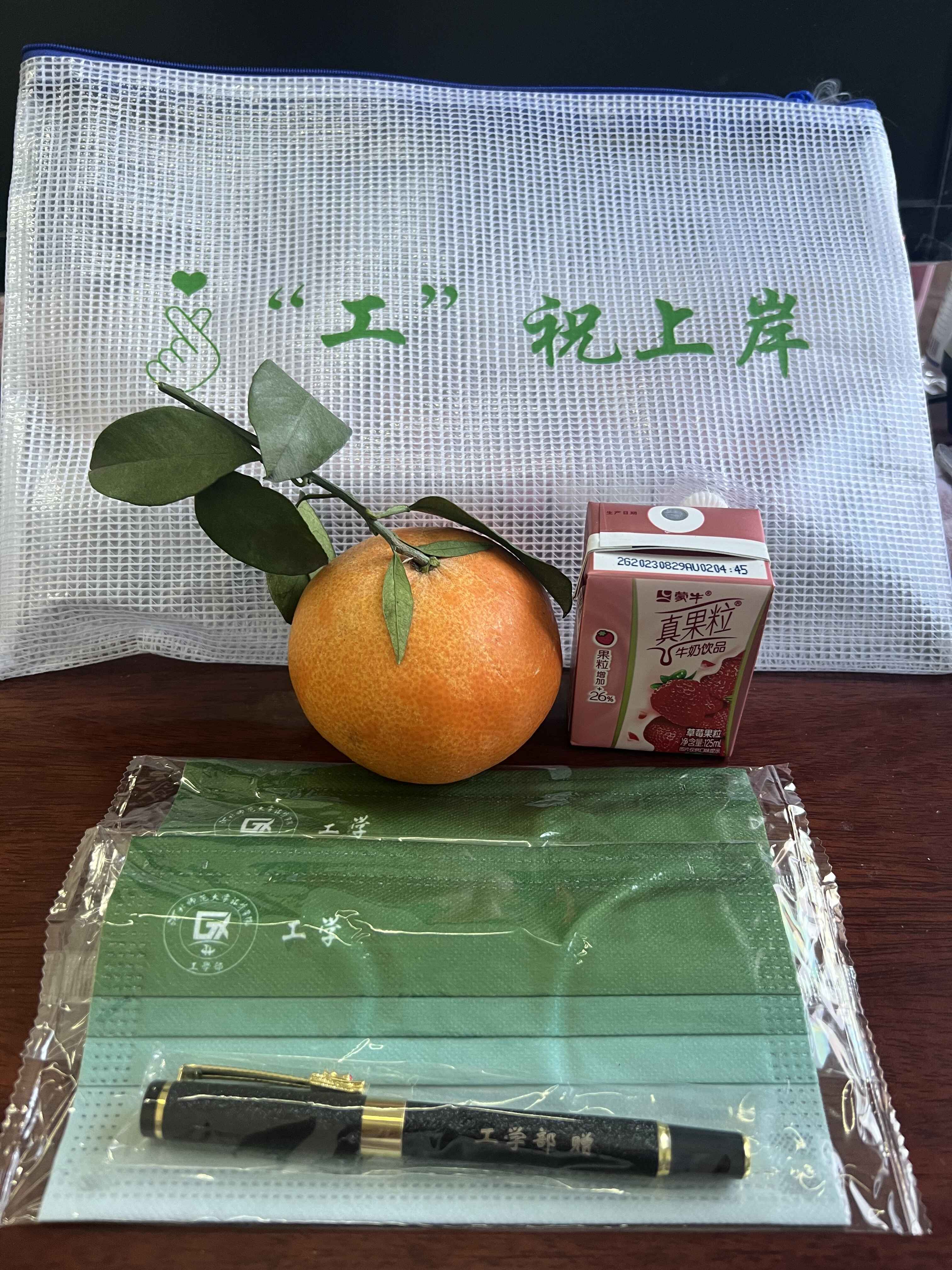 工学部为考研学生精心准备了慰问礼品,标注着“‘工’祝上岸”的文件袋里面装着代表马到“橙”功的橙子,和“牛”气冲天的牛奶,以及印有工学部logo的文具和口罩。同学们收到小礼物之后表示非常开心和感动,感受到了学部的用心,有被狠狠的“暖”到。