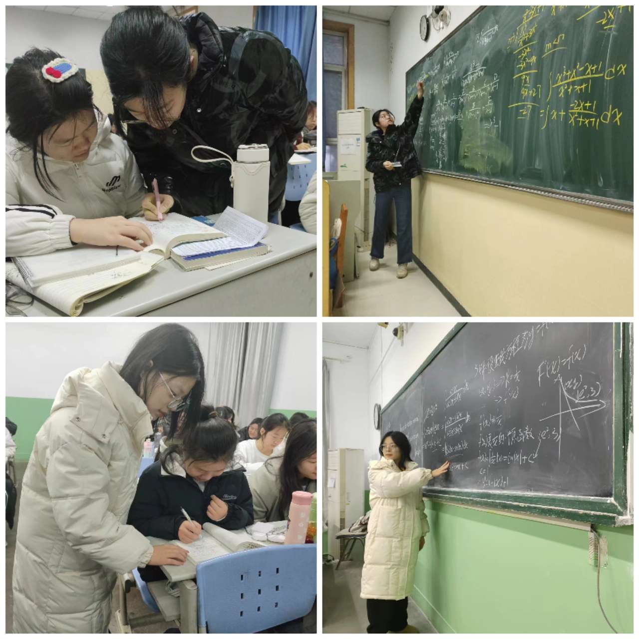 初心使命镌刻于心,肩上之责外化于行  岁月不居,时节如流。随着期末考试的临近,学生志愿者为了更好地帮助大一学生理解和掌握《高等数学》,巩固基础知识,提高基础学科的学习能力,志愿者们利用早自习时间用清晰的思路和通俗易懂的语言进行课程讲解。同时,通过作业辅导和答疑解惑的形式,帮助同学们回顾复习知识点,巩固学习成果,解决困难。授之以鱼不如授之以渔,志愿者们不仅答疑解惑,还分享了自己的学习心得与经验,助力同学们更好地理清思路、抓住学习的关键。他们将初心和使命镌刻于心,肩上之责外化于行,时刻谨记优秀共产党员、入党积极分子要发挥的积极带头作用。