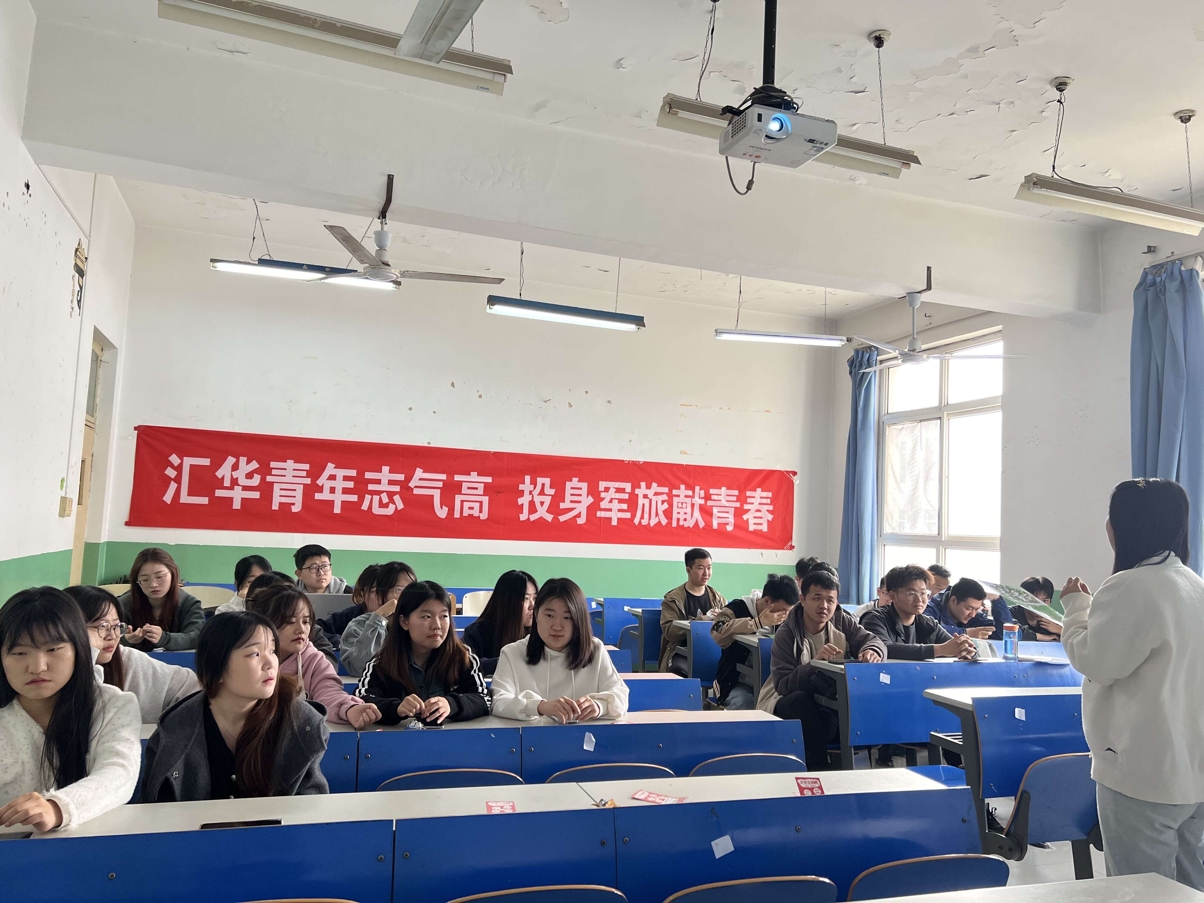 3月28日,工学部在第一教学楼316教室举办2024年高校毕业生征兵工作动员会,旨在激励广大高校毕业生积极响应国家征兵号召,为实现中华民族伟大复兴的中国梦贡献自己的力量。