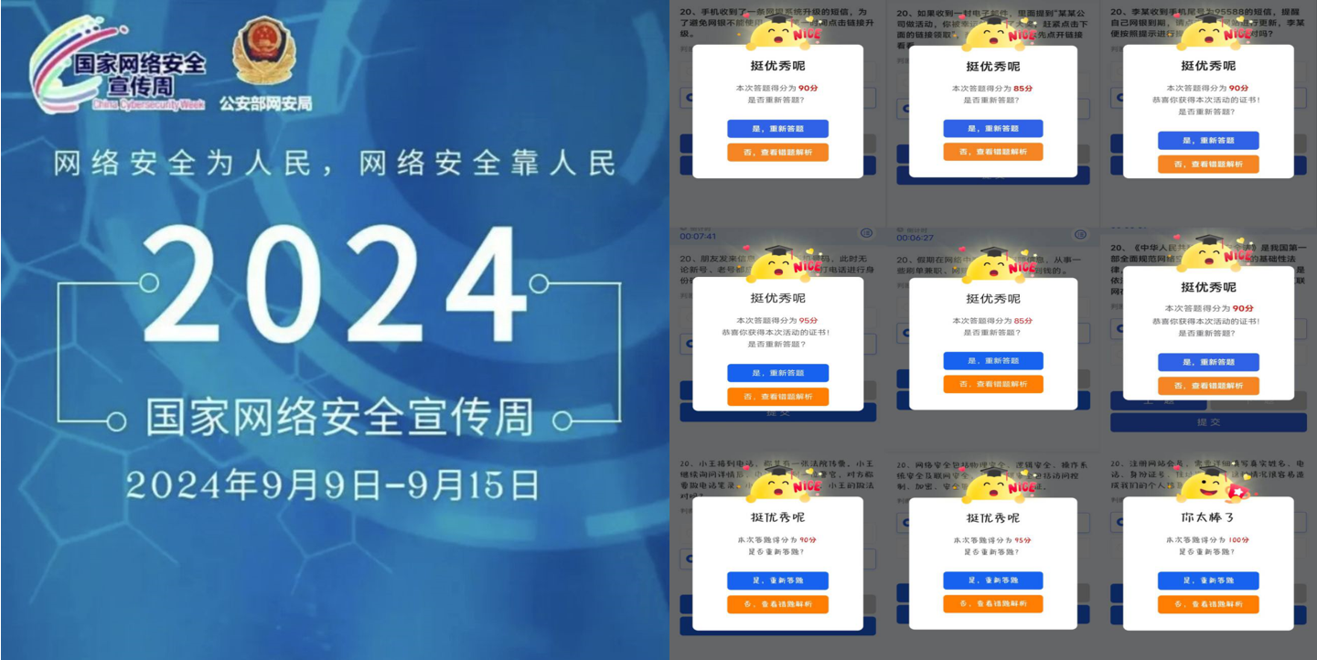 趣答题挑战,知识实践并驱前行。为增强互动性与实践性,信息安全小组带动同学们积极参与“守护青春,网络有你”全国大学生网络安全知识答题活动,以智慧为刃,斩断网络威胁的荆棘。题目设计精妙,既有理论深度,又贴近生活实际,让参与者在挑战中收获新知,在互动中共同成长。此次活动不仅提升了师生的网络安全素养,普及了防范网络诈骗、安全使用网络等方面的知识,更激发了大家对网络安全的浓厚兴趣与高度关注。