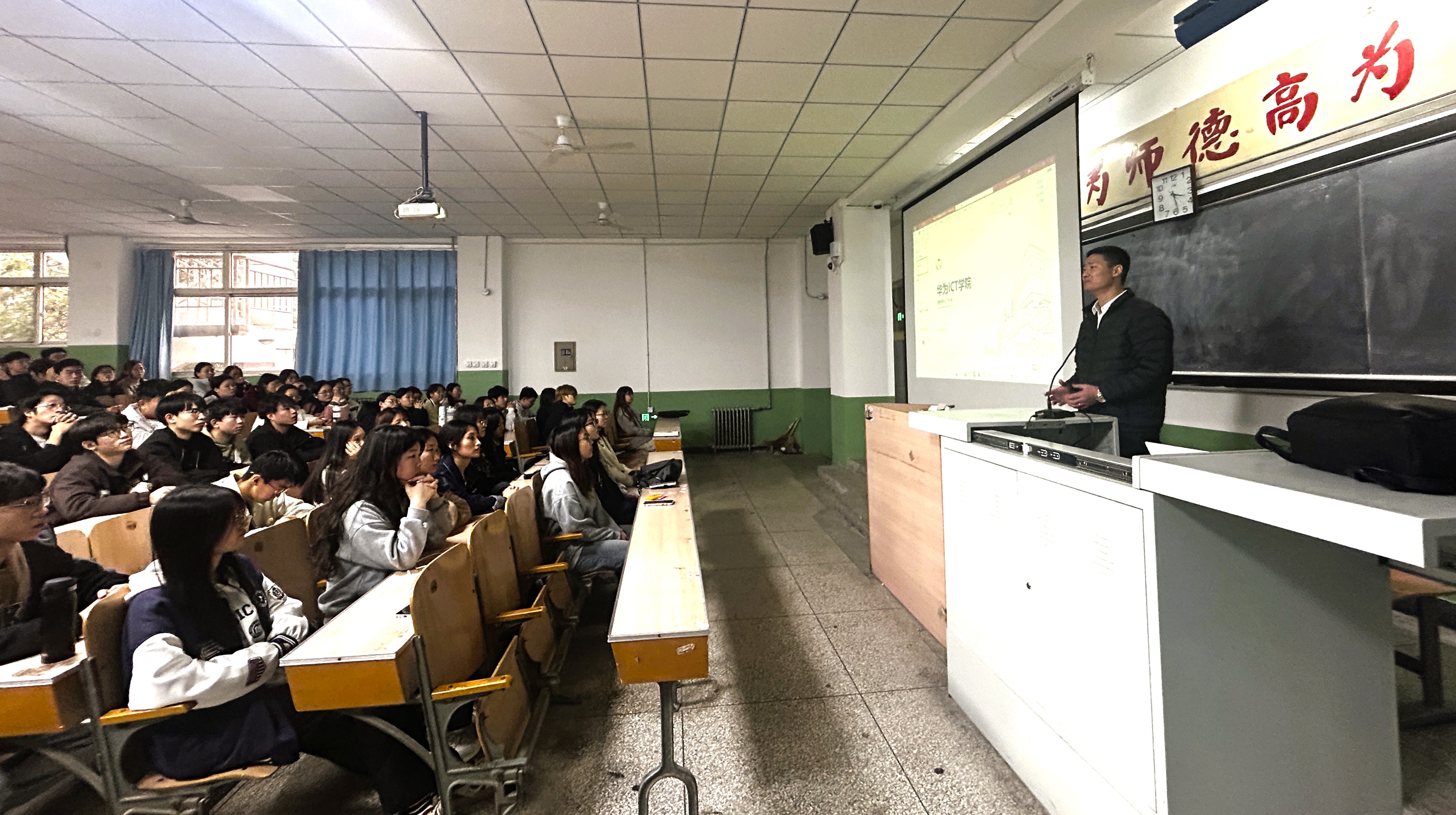 10月31日,工学部于第一教学楼312教室成功举办主题为“华为ICT技术应用和产业人才发展”的讲座。本次讲座邀请到河北省信息协会副会长王玉江以及华为河北人才生态部经理郭增华担任主讲嘉宾,吸引了工学部200余名师生参加。