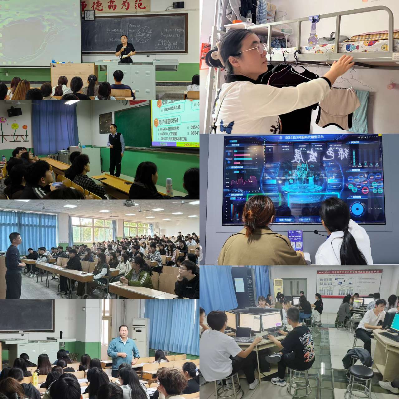 未来方向准确化 计算机相关竞赛的开展无疑是学风建设的有力举措。张洁积极主动地组织学生参与各类计算机竞赛,例如 “银方智能” 杯计算机技能大赛、全国大学生软件创新大赛、蓝桥杯等等。不仅如此,还精心组建竞赛团队,严格选拔优秀学生进行集中训练,通过竞赛切实有效地提高学生的专业技能,培养学生的团队合作精神与创新能力,为学生未来在就业市场上的竞争奠定了坚实基础。学生们在两年的学习中,逐渐明确了自身发展方向。在近期职业规划指导方面,张洁深知行业动态对于学生的重要性非同小可。她积极热情地邀请各领域优秀校友来校或者通过在线方式讲学。校友们无私地分享计算机行业的最新动态和发展趋势,以及考研、考公、考编和就业等丰富详实的信息,为学生清晰地指明了发展方向,助力他们科学合理地做好未来的职业规划。为了让学生能够更好地接触行业前沿,精准把握市场需求,张洁还带领学生们积极参观2024年石家庄数字博览会。在博览会上,学生们拥有难得的机会亲身体验最新的数字技术成果,与行业内的专业人士进行面对面的交流互动。不仅拓宽了学生的视野,让他们对行业有了更直观、更深入的认识,进一步明确了学习目标和职业方向,对于提升学生的综合素质和未来就业素养具有深远的意义。