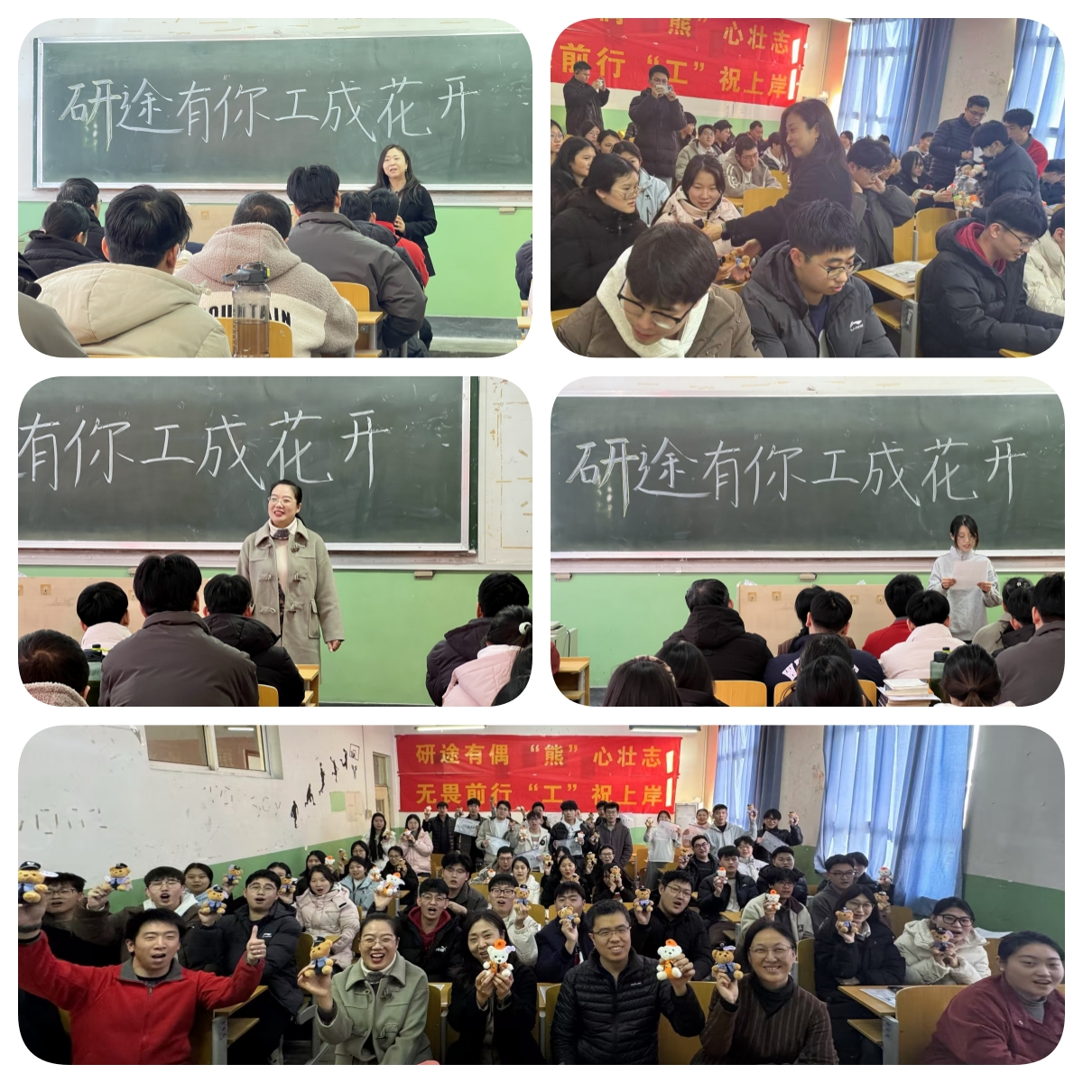 12月16日,工学部在第一教学楼511教室成功举办了主题为“研途有你,工成花开”的考研送温暖活动,旨在鼓励和支持即将参加考研的学子,为他们送上温暖与祝福。