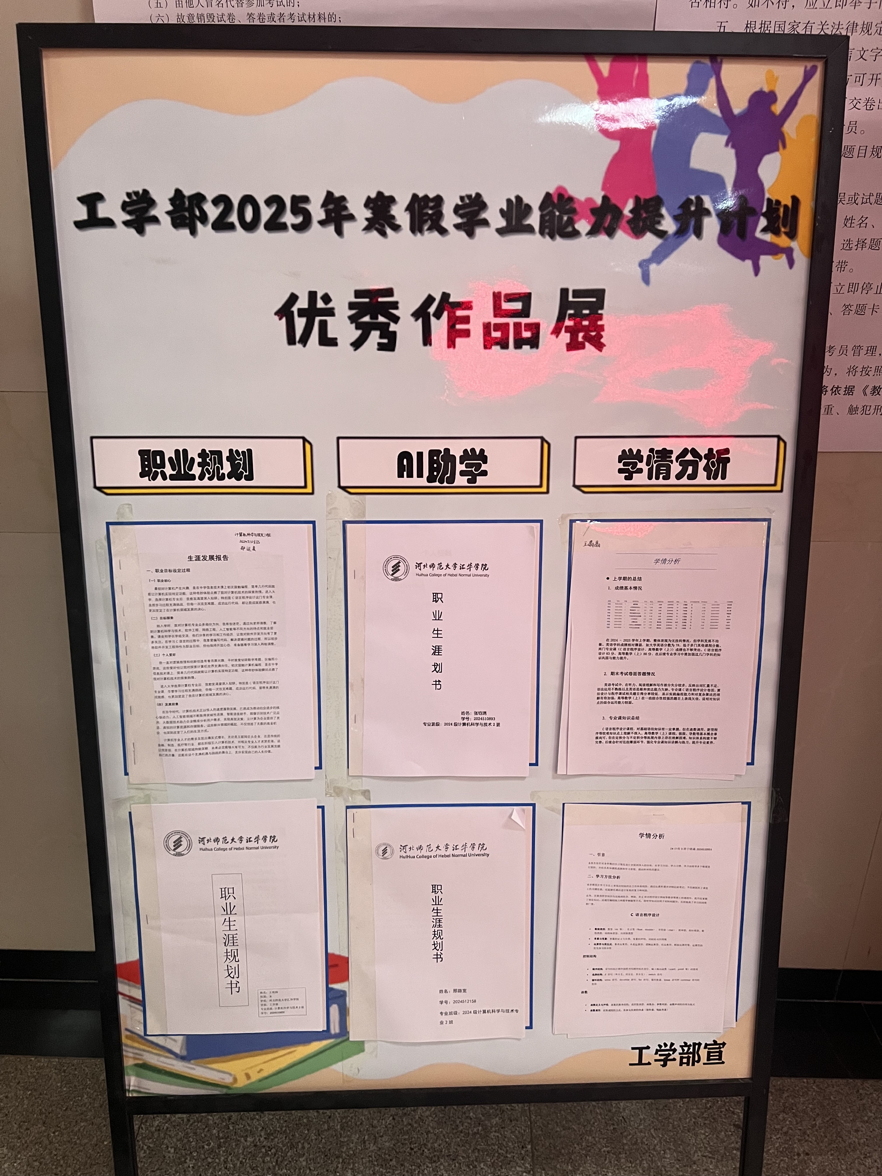 为提升学生专业实践与自主学习能力,工学部于2025年寒假面向学部全体在校生开展“蓝桥杯集训打卡、AI助学、学情分析、职业规划”四大主题能力提升活动。通过多元化的任务设计与智能化工具应用,进一步夯实专业能力,将理论知识转化为实践作品,培养学生解决问题的能力。寒假结束后,共收取AI助学、学情分析、职业规划作品1019份。工学部专业教师和网络协会负责人进行了评选,评选出优秀作品53份,将部分学生提交的优秀作品进行展示。