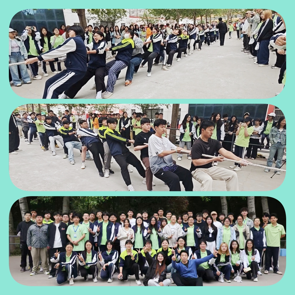 男生队的比赛同样扣人心弦。赛场上,男生们斗志高昂,以稳健的步伐、有力的拉扯,与对手展开力量与意志的较量。即便对手实力强劲,他们依然相互鼓励、默契配合,在一次次僵持中灵活调整战术,凭借顽强拼搏一路过关斩将,最终取得第三名的好成绩。