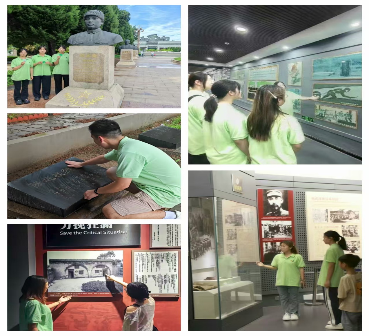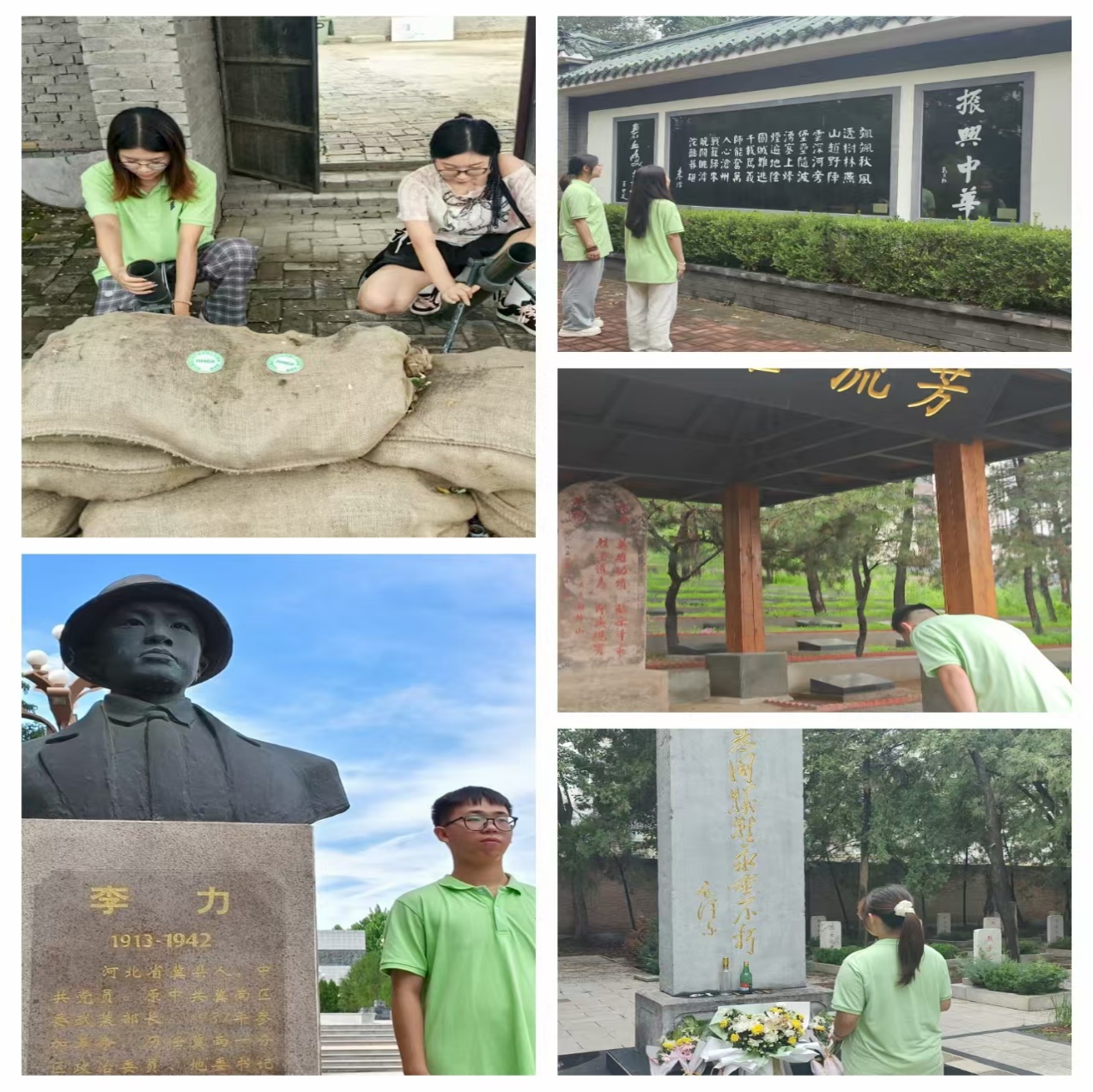 沧澜星火同乡队前往沧州烈士陵园,开展祭扫活动,在庄严肃穆的烈士纪念碑前,敬献花篮、默哀致敬;赤潮先锋同乡队走进丰宁满族自治县烈士陵园,实地参观,追溯历史记忆;冀中烽火同乡队携手前往河北省保定市冉庄地道战纪念馆,全方位参观地道战历史展区;学生党员暑期实践队也积极行动,围绕“深刻感悟党的创新理论的实践伟力”主题,前往石家庄解放纪念馆、河北省博物馆、西柏坡革命圣地开展实地践学与志愿服务,以实际行动传承红色基因。
