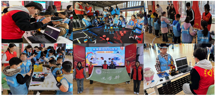 11月16日,工学部志愿服务队全程深度为“未来新闻官科技节”开展科普服务,以专业素养与高效行动落实技术协教、活动引导、安全保障等志愿服务工作。当日,该科技节于裕东小学天玺校区举办,一场集硬核科技、趣味互动、赛事探秘于一体的“探索科技,点亮梦想”科技盛宴震撼登场,近200名小学生沉浸式参与其中。