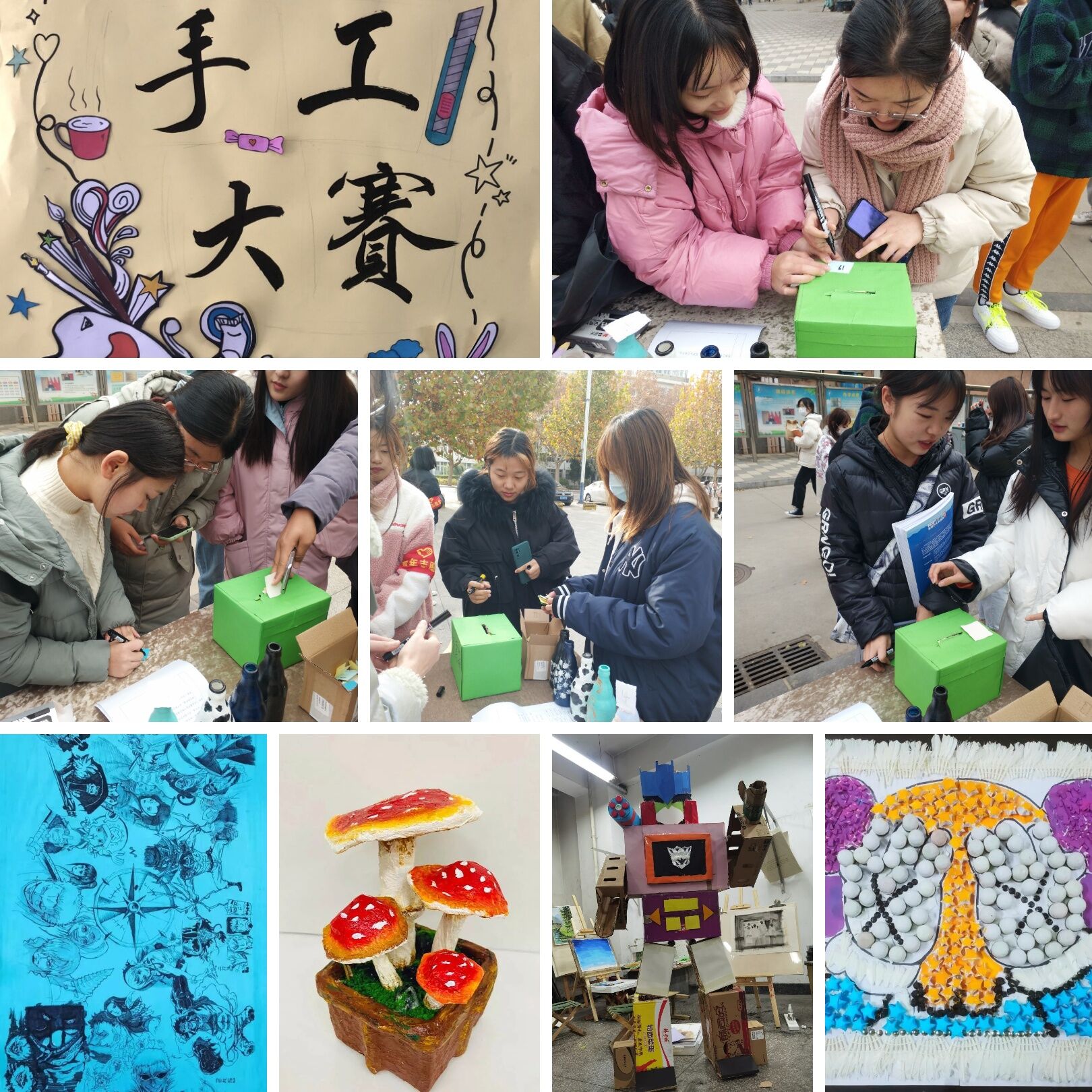 11月22日艺术学部青年志愿者协会分别在第三教学楼一楼大厅,食堂东广场开展“变废为宝”手工大赛。大赛面向学部2019级,2020级全体成员,共展出22件作品。