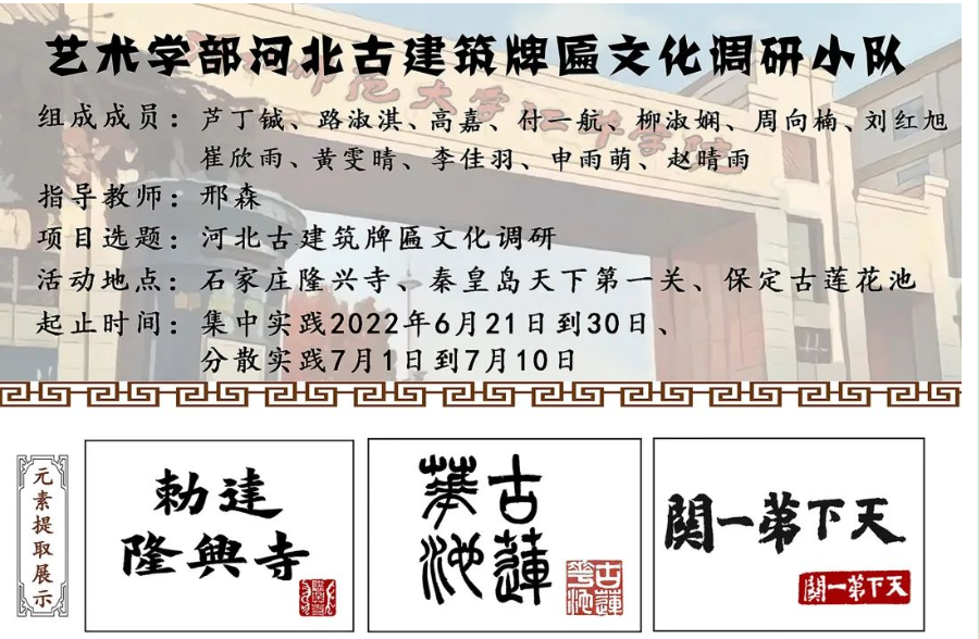 艺术学部河北古建筑牌匾文化宣传队暑期实践圆满完成