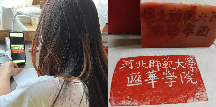 6月30日,是艺术学部河北省古建筑牌匾文化宣传队的第九天。刘红旭用图像印的艺术形式刻出“隆兴寺”,显示出寺院的庄重。李佳羽用篆刻知识设计出两方印,以朱文和白文形式分别体现出“艺术学部”,既体现了其古朴庄严,又体现了其清新雅致。黄雯晴运用楷书的表现方式,选取天下第一关制作两个钥匙扣和书签。崔欣雨用纸杯和书法学队员合作设计出了惟妙惟美的纸杯文化。申雨萌继续用扇面草书临摹自古莲花池的碑刻,用楷书写了钥匙扣和书签。周向楠用古莲花池元素,制作名片。芦丁铖继续运用ps制作牌匾插画。路淑淇楷书扇面取法山海关的牌匾,写出山海关的气势雄伟壮观。赵晴雨继续完成牌匾的白描画作。经过队员们不断努力,文创产品基本成型,这些文创产品不仅仅体现了牌匾文化的原始瑰丽,更采用大众喜闻乐见的样貌。