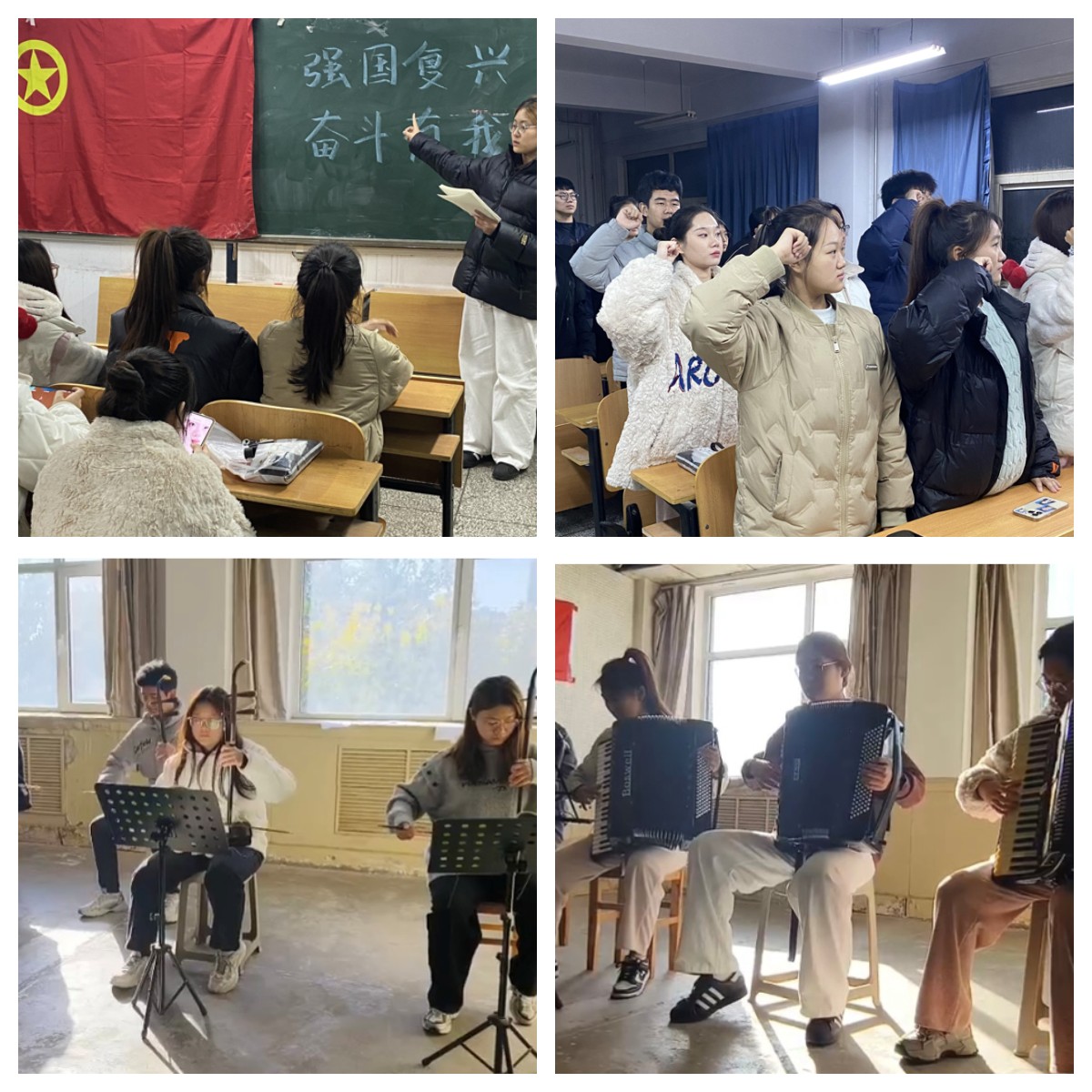 11月16日,2023级艺术学部音乐学专业二班团支部开展了“强国复兴 奋斗有我”团日活动。这次团日活动旨在引导学生牢记中国梦、强国复兴的使命,激励他们勇敢担当、积极奋斗,并且进行了团员宣誓环节。活动以音乐为纽带,通过丰富多样的形式,展示了艺术学生的风采与才华。